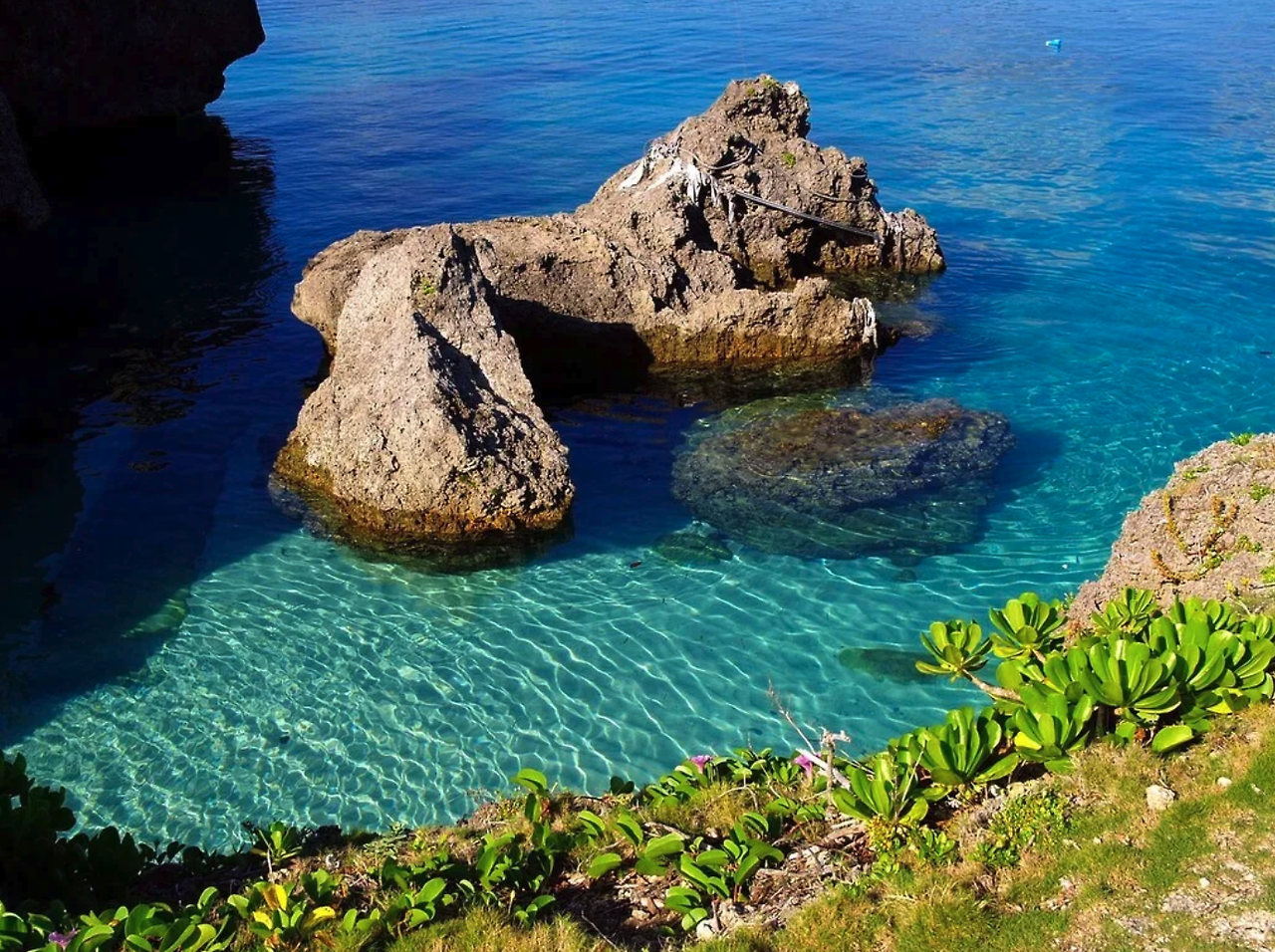만좌모는 오키나와의 대표적인 관광지로, 만명이 앉을 수 있는 초원이라는 뜻을 가지고 있습니다. 류큐 석회암으로 이루어진 절벽 위에 펼쳐진 잔디밭과 바다가 어우러져 절경을 이루고 있습니다. 특히, 코끼리 코 모양의 큰 바위와 투명한 바다의 대비는 사진 촬영에 최적의 장소입니다.