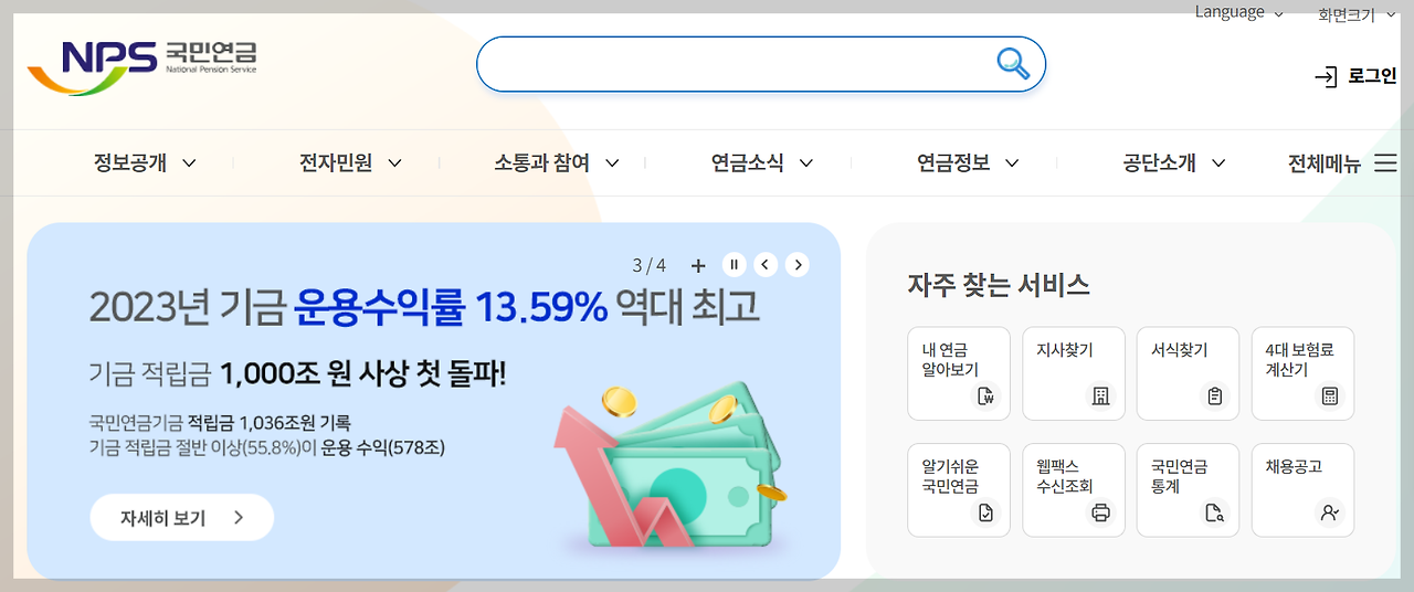 - 국민연금공단 홈페이지 접속: 국민연금공단 홈페이지에 접속합니다.