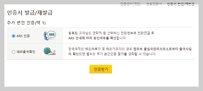 클릭 시 해당 은행 인증센터로 바로 이동 가능합니다.