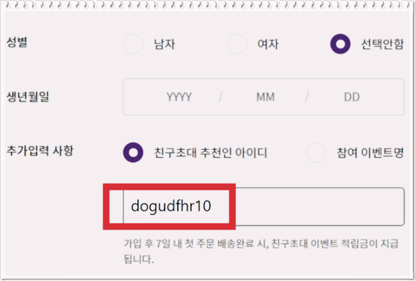 마켓컬리 참여이벤트명 추천인 dogudfhr10