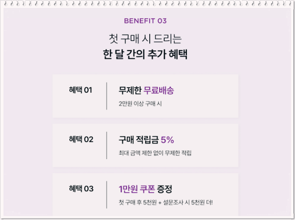 컬리 멤버스에 가입하면 2만 원 무료배송 쿠폰을 31장이나 받을 수 있으니, 자주 이용하는 분들에게는 정말 유용한 혜택입니다. 이처럼 마켓컬리는 소비자에게 다양한 방법으로 혜택을 제공하며, 고객의 편리함을 고려한 서비스가 돋보였습니다.