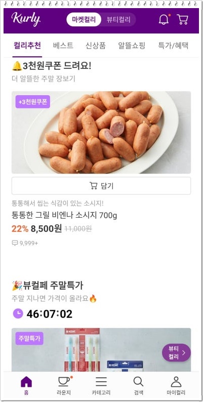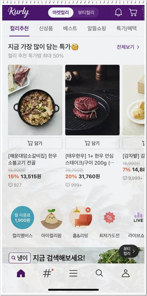 마켓컬리 추천인 dogudfhr10(한글로 애형록10) 입력하여 할인쿠폰받기