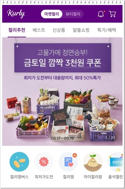 마켓컬리 추천인 dogudfhr10(한글로 애형록10) 입력하여 할인쿠폰받기