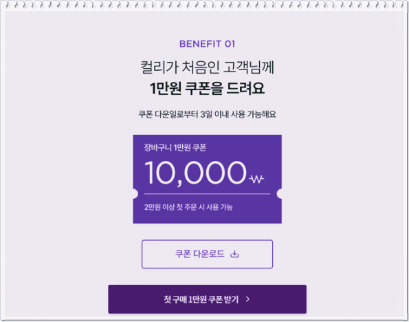 마켓컬리 추천인 dogudfhr10(한글로 애형록10) 입력하여 할인쿠폰받기