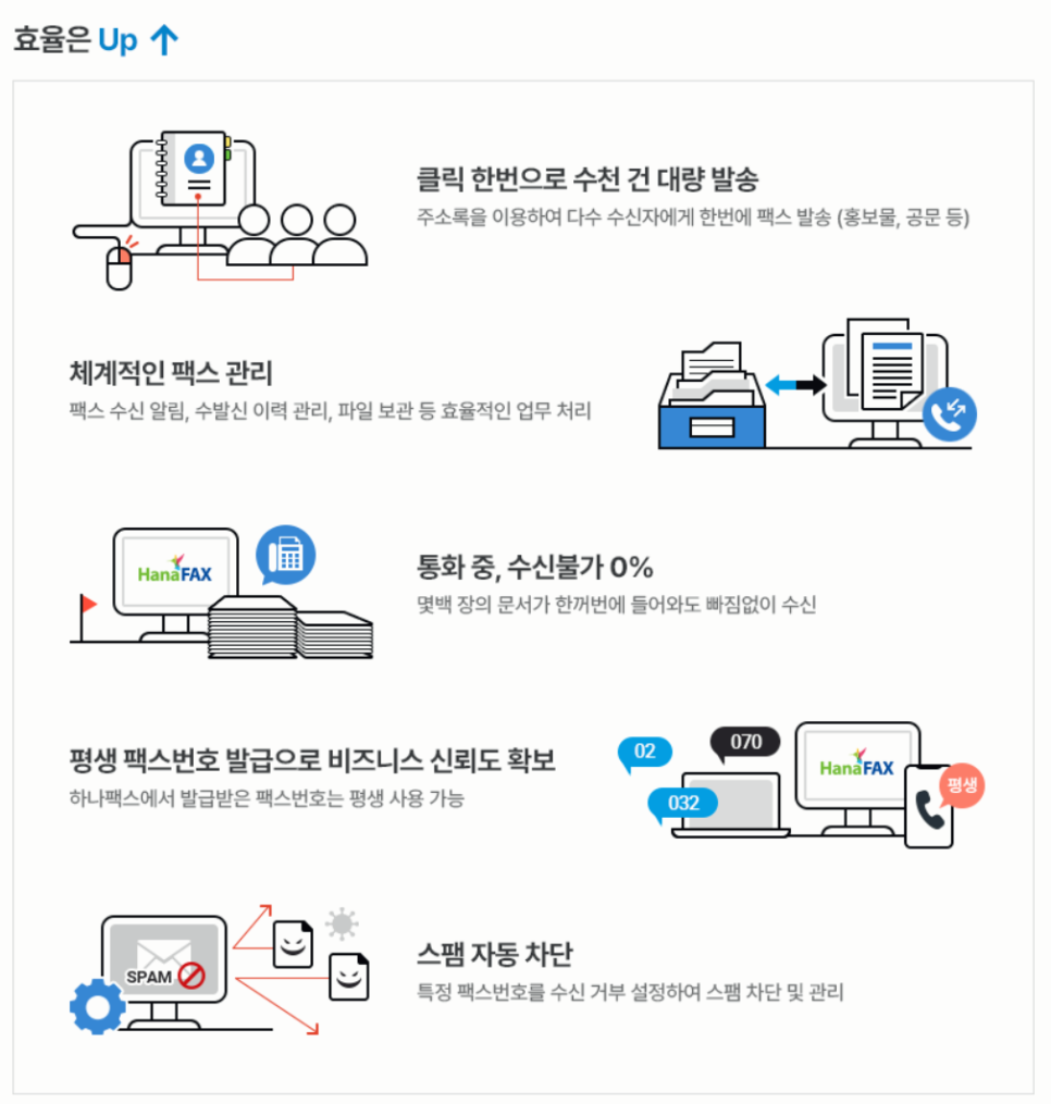 하나팩스는 이메일을 보내듯이 복잡한 업무를 간편하게 처리할 수 있는 혁신적인 서비스입니다. 웹이나 핸드폰으로 사진을 찍어서 보내면 되며, 일반 요금보다 훨씬 저렴한 가격으로 이용할 수 있습니다. 특히, 사무실 이전 시에도 기기를 옮기지 않고도 동일한 번호로 핸드폰으로 정보를 받아볼 수 있다는 점은 매우 큰 장점입니다.