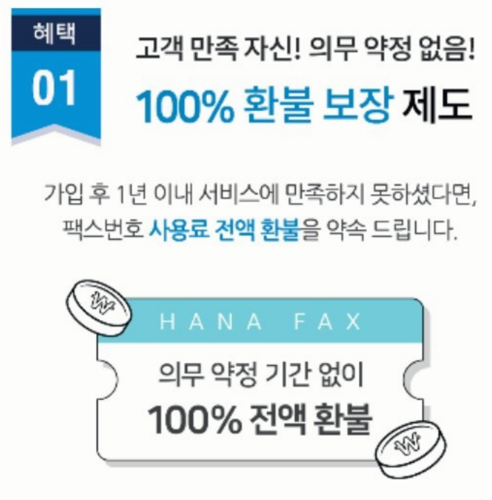 하나팩스는 요금 체계도 매우 합리적입니다. 수신할 때는 무료이며, 발송 요금은 한 장당 42원으로 매우 저렴합니다. 개인 번호를 사용할 경우 월 5천원의 요금이 부과되지만, 가입 시 최대 47장까지 무료로 제공되는 혜택이 있어 충분히 사용해 볼 수 있습니다. 또한, 서비스가 마음에 들지 않을 경우 가입 후 1년 이내에 전액 환불이 가능하다는 점도 신뢰할 수 있는 요소입니다.