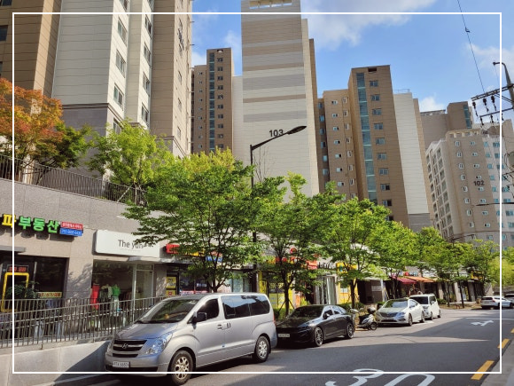 그러나 대형마트가 1500m 이내에 없는 점은 아쉬운 부분입니다. 대신 소규모 상점과 식당, 카페가 많이 있어 일상적인 쇼핑과 외식에는 큰 불편이 없습니다. 또한, 계남공원과 넘은들공원 등 다양한 공원이 가까워 여가 활동을 즐기기에 좋은 조건을 갖추고 있습니다.