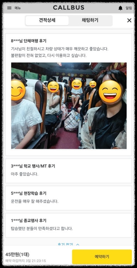 이용 전, 고객님은 여러 업체의 견적을 비교하였고, 콜버스를 통해 최적의 조건을 찾게 되었습니다. 고객님의 요구에 맞춘 버스를 대절하는 것은 쉽지 않은 일인데, 콜버스는 이러한 니즈를 충족시키기 위해 다양한 선택지를 제공했습니다. 고객님은 편안한 여행을 위해 최선을 다한 콜버스의 서비스에 큰 만족을 느끼셨습니다.