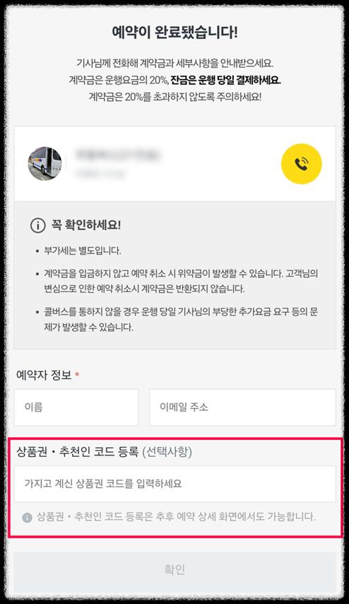 - 대절 목적: 관광, 행사, 결혼식 등 목적에 따라 요금이 달라질 수 있습니다.