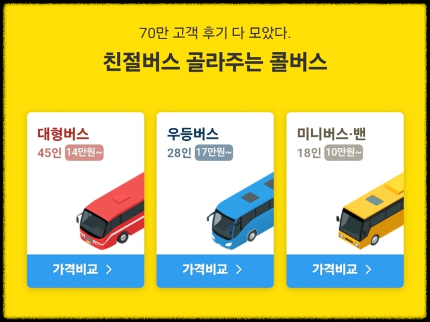 ✅ 콜버스는 가격 비교부터 예약까지 한 번에 끝낼 수 있는 편리한 플랫폼입니다. 고객님은 번거로운 절차 없이 손쉽게 원하는 버스를 대절할 수 있었고, 이는 여행의 시작부터 끝까지 만족스러운 경험을 제공합니다. 콜버스는 고객님의 소중한 여행을 위해 항상 최선을 다하고 있습니다.