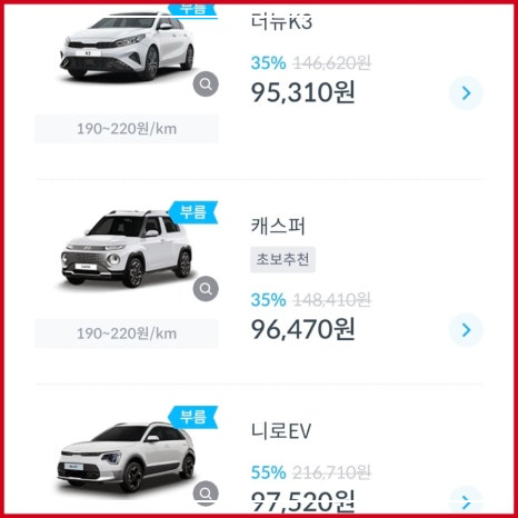 예를 들어, 최대 5만 원의 자기 부담금 옵션을 선택할 경우, 경형차의 보험료는 약 2만 원에서 2.3만 원, 준중형차는 3만 원에서 3.1만 원, 중형차는 3만 원에서 3.2만 원의 보험료가 부과됩니다. SUV와 전기차의 경우도 각각 다른 보험료가 책정되어 있으니, 대여할 차량의 종류에 따라 보험료를 미리 확인하는 것이 좋습니다.