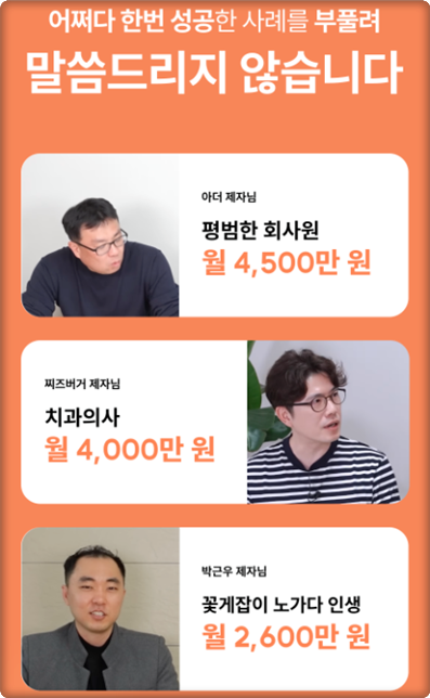 또한, 강의 중 제공되는 다양한 팁과 노하우는 실질적인 도움이 되며, 수강생들이 실제로 성공 사례를 인증하는 코너도 마련되어 있어 신뢰를 더합니다. 이러한 다양한 커리큘럼 덕분에 수강생들은 자신에게 필요한 지식을 쉽게 습득할 수 있습니다.