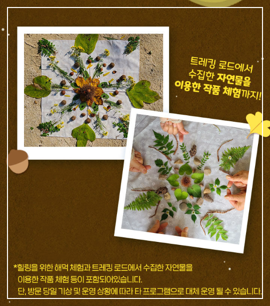 또한, 숲속에서 얻은 자연물(낙엽, 은행잎, 조약돌 등)을 활용해 작은 작품 만들기 프로그램도 마련되어 있습니다. 이 활동은 어린이들에게 자연의 소중함을 배우고 창의력을 발휘할 수 있는 기회를 제공하며, 어른들에게도 자연과 함께하는 힐링의 시간을 선사합니다. 가족 단위 방문객에게는 더욱 뜻깊은 체험이 될 것입니다.
