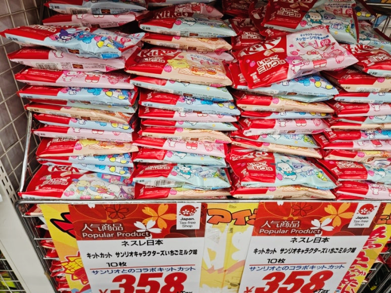기념품으로는 산리오 캐릭터 상품이 특히 인기가 높습니다. 귀여운 디자인의 과자와 함께 기념품으로 구매하면 좋습니다. 킷캣과 같은 초코바도 다양한 맛으로 출시되어 있어, 일본에서만 느낄 수 있는 특별한 맛을 경험할 수 있습니다. 이렇게 다양한 간식과 기념품들은 친구나 가족에게 선물하기에도 좋고, 여행의 추억을 담아오기에 완벽한 아이템들입니다.