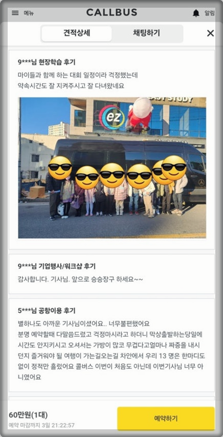 ✅ 실제 이용객들의 리뷰와 평가를 참고하는 것은 전세버스 업체를 선택하는 데 매우 중요합니다. 과거 이용자들의 의견을 통해 해당 업체의 서비스 품질, 차량 상태, 운전기사의 친절도 등을 파악할 수 있습니다. 온라인 리뷰 사이트나 소셜 미디어에서 다양한 평가를 찾아보세요.