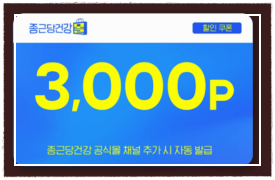 이 포인트 쿠폰은 종근당건강몰에서 다양한 제품 구매 시 사용할 수 있어, 여러분의 건강 관리에 도움이 될 것입니다. 카카오 채널을 추가하는 것만으로도 추가적인 혜택을 받을 수 있으니, 회원가입 후 반드시 잊지 말고 추가해 보세요!