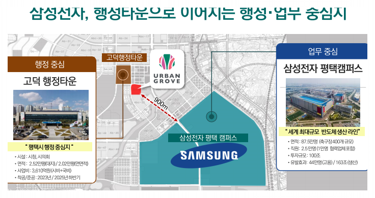 평택 고덕 어반그로브는 약 14만의 주거 수요층을 품고 있으며, 이곳은 고덕 삼성전자 캠퍼스타운, 평택시청, 시의회 등과 가까운 독보적인 중심 상권입니다. 이 지역은 고덕신도시 내에서 약 14만명이 직주하는 수요층과 인근 브레인시티, 평택 미군기지의 수요층 약 32만명, 그리고 광역 수요층까지 포함하면 51만여명의 수요를 흡수할 수 있는 잠재력을 지니고 있습니다. 이러한 수요는 향후 110만여명의 고객이 찾아오는 상업시설로 발전할 가능성을 내포하고 있습니다.
