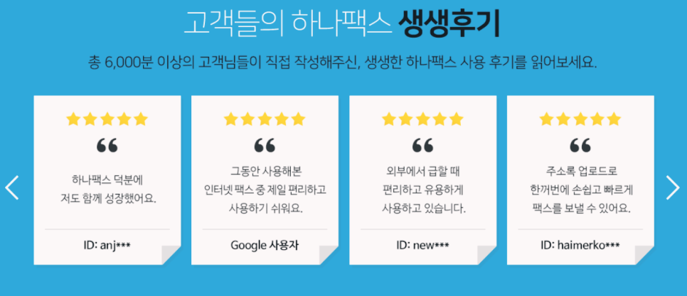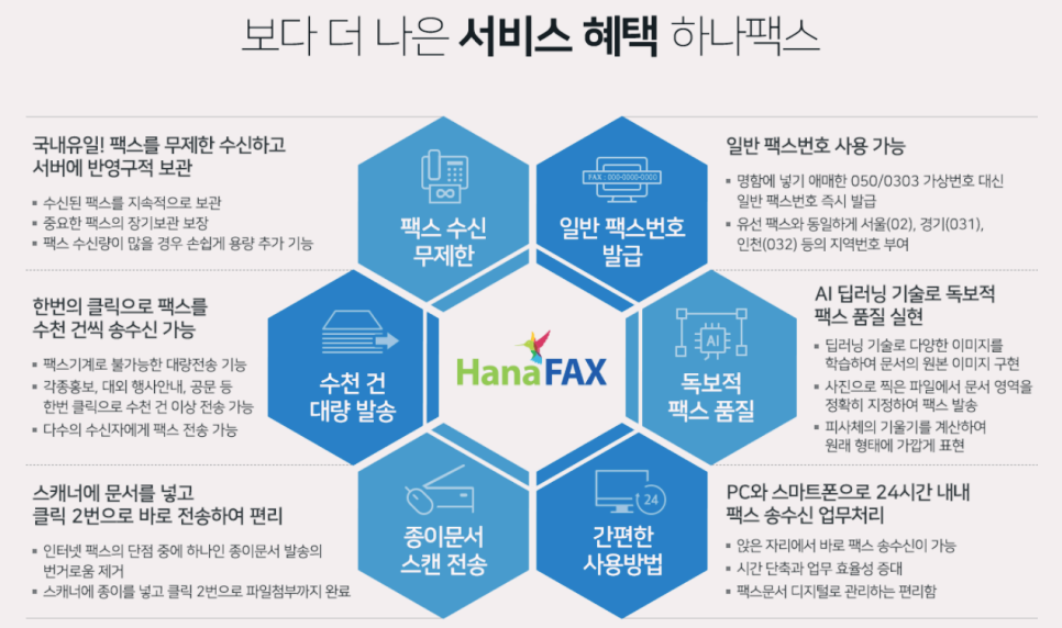 특히, 하나팩스는 8년 연속 소비자 만족도 1위를 기록하며 많은 사용자들에게 사랑받고 있습니다. 사용자가 많다는 것은 그만큼 신뢰할 수 있는 서비스라는 것을 의미하죠. 따라서 처음 사용하는 분들도 쉽게 적응할 수 있을 것입니다.