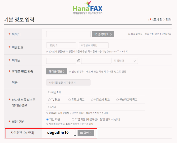 하나팩스의 가입 절차는 매우 간단합니다. 플레이스토어에서 애플리케이션을 다운로드한 후, 회원가입을 진행하면 됩니다. 가입 시 추천인 ID를 입력하면 추가적인 혜택도 누릴 수 있어요. 가입 후 즉시 팩스 수발신이 가능하므로, 번거로운 기계 설치나 복잡한 절차 없이도 서비스를 이용할 수 있습니다.