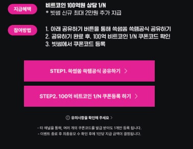 이번 쓱데이에서는 비트코인 100억원 상당을 1/N으로 나누어 주는 특별한 이벤트가 열립니다. 이 기회를 놓치지 않도록 꼭 참여해 보세요. SSG.COM에 로그인 후 쓱데이 이벤트에 참여하면 다양한 혜택을 누릴 수 있습니다. 또한, 신규 가입 시 2만원 즉시 지급 이벤트도 있으니 놓치지 마세요.