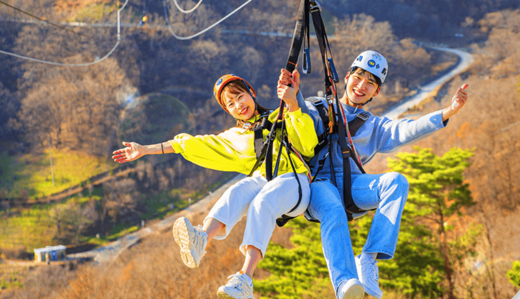 대봉산에는 모노레일 외에도 짚라인이 있어 또 다른 재미를 제공합니다. 짚라인은 국내 최장거리인 3.27km와 최고도인 1,228m를 자랑하며, 자유비행 방식으로 자연경관을 즐길 수 있는 스릴 넘치는 경험을 제공합니다. 짚라인도 마찬가지로 사전 예약이 필요하며, 예약은 공식 웹사이트에서 진행할 수 있습니다.